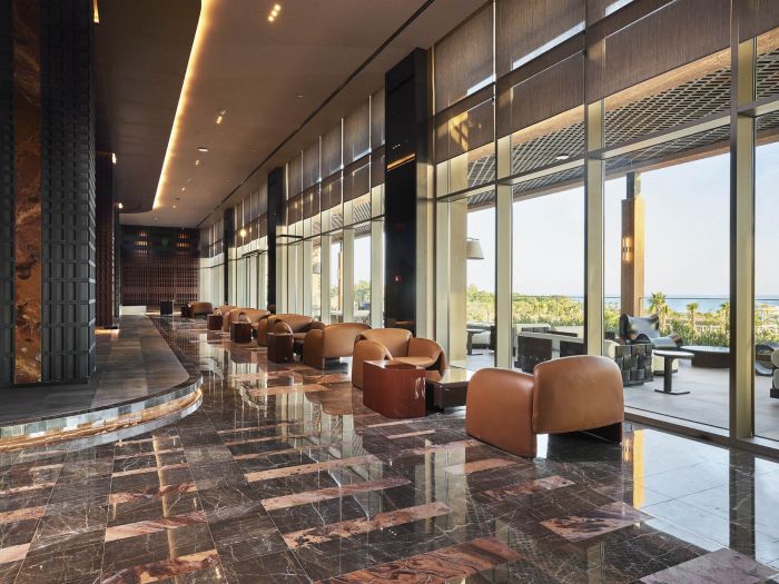 Основен ресторант (тематични вечери 7 дни в седмицата, диетичен и веган бюфет), 5 а-ла-карт ресторанта (италиански, егейски, турски – 1 безплатно посещение на 1 от ресторантите при минимум 4 нощувки, с предварителна резервация; лаундж – безплатен за гостите, настанени в категории стаи Suite/срещу такса за всички останали гости, с предварителна резервация; интернационален и с кухня от далечния изток – срещу заплащане, с предварителна резервация), 2 снек ресторанта, бистро 24/7, сладкарница, кафене, 10 бара (1 от които Rooftop бар – срещи заплащане), 11 открити и 1 закрит басейн (отопляем в периодите март-април и октомври-ноември), аквапарк с 5 водни пързалки за възрастни и 3 за деца, СПА център, магазини, 3 конферентни зали.