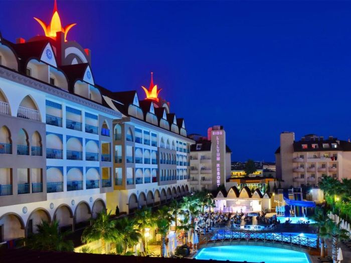 Основен ресторант, 1 а-ла-карт ресторант (турски/италиански/рибен – срещу заплащане), снек бар на плажа, сладкарница, 4 бара, 3 открити и 1 закрит басейн, аквапарк с 6 водни пързалки, СПА център, магазини, паркинг.