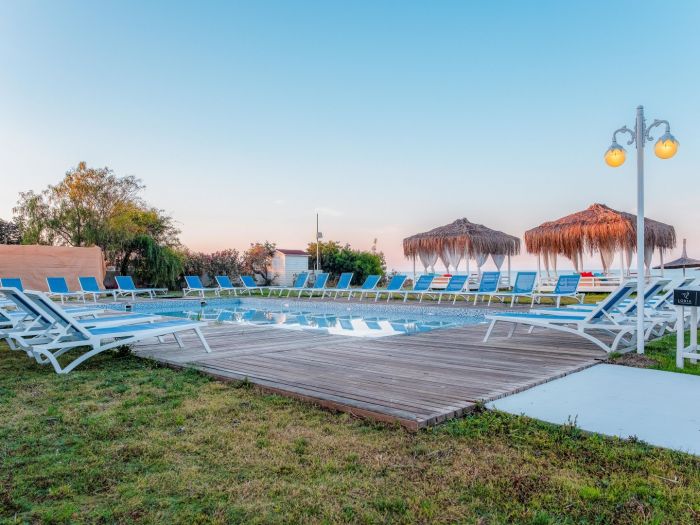 Собствен чакълест плаж. Чадъри, шезлонги и плажни кърпи на плажа и басейните - безплатно.