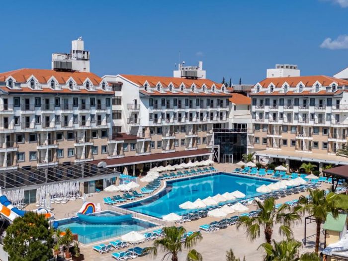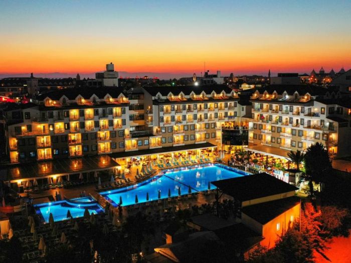 Намира се на 55 км от летище Анталия, на 65 км от центъра на Анталия, на 15 км от центъра на Сиде, на 300 м брега на морето. Построен 2004 г., на обща площ от 10 000 м2. Реновиран частично 2024/2025 г.