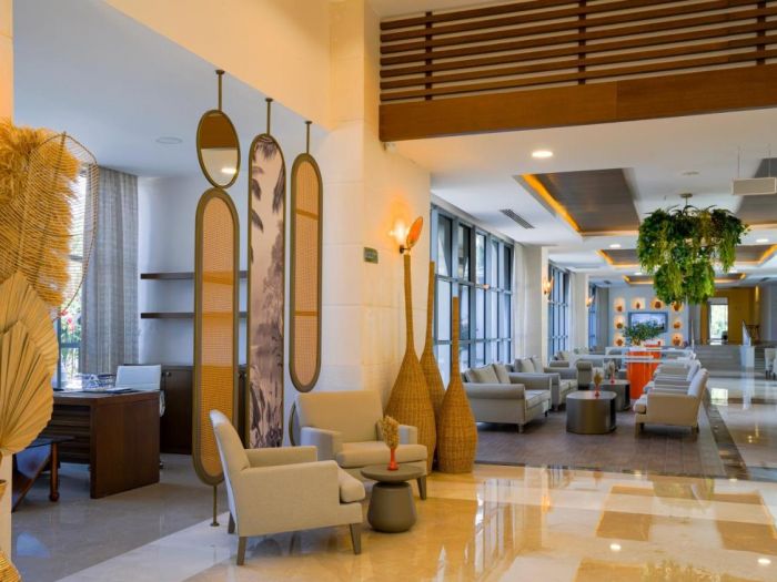Основен ресторант, 2 а-ла-карт ресторанта (рибен, азиатски – 1 безплатно посещение на 1 от ресторантите при минимум 5 нощувки, с предварителна резервация), снек ресторант на плажа, сладкарница, 4 бара, дискотека, 3 открити басейна, 1 закрит басейн (отопляем през определение от хотела периоди), 2 водни пързалки, СПА център, магазини, 1 конферентна зала.