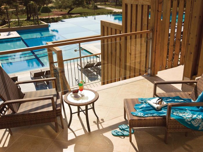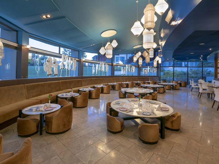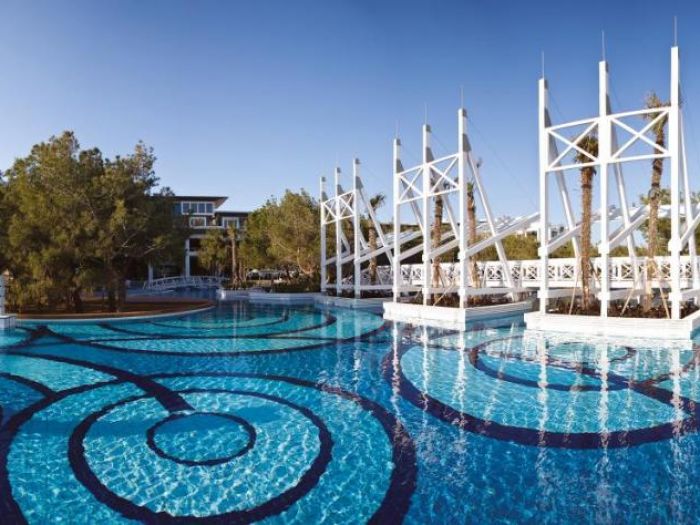 Основен ресторант, 3 а-ла-карт ресторанта (рибен, турски и италиански), 6 бара, външни басейни, японски басейн, вътрешен басейн, водни пързалки, СПА център, анимация, фитнес, турска баня, сауна, масажи, тенис корт, тенис на маса, водни спортове, пилатес, дартс, плажен волейбол, WI-FI, паркинг. За децата: мини клуб, мини диско, пяна парти, анимация. Плаж: собствен , пясъчен. Чадъри и шезлонги при басейна и плажа - безплатно.