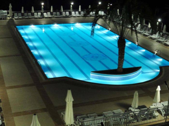 Основен ресторант, а ла карт ресторант, 3 външни басейна с пъзалки, лоби бар, бар до басейна и на плажа, диско, снек бар, аква бар, анимация, амфитеатър, конферентна зала, СПА център, магазин бутик, тв зала, библиотека, паркинг.