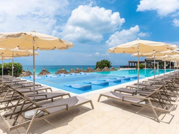 RIU Palace Zanzibar 5*е разположен на северозападното крайбрежие на Занзибар, на красивия плаж с бял пясък Нунгви. Град Стоун Таун е на 55 км от хотела. Хотелът Riu Palace Zanzibar се намира на красив плаж с бял пясък с кристални води и предлага на своите гости почивка на база ол инклузив с качеството на веригата RIU Hotels & Resorts В Riu Palace Zanzibar. На разположение на гостите са три басейна, СПА център, ресторанти и барове. За доброто насроение се грижи екип от аниматори, а вечер има музика на живо.Общите части и стаите разполагат с безплатен Wi-Fi.